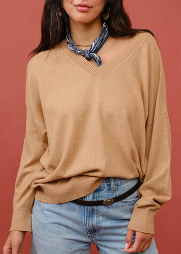 V-Neck Cashmere Blend Sweater | Camel