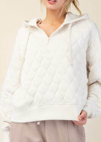 Nola Quilted Quarter Zip Hoodie | Taupe