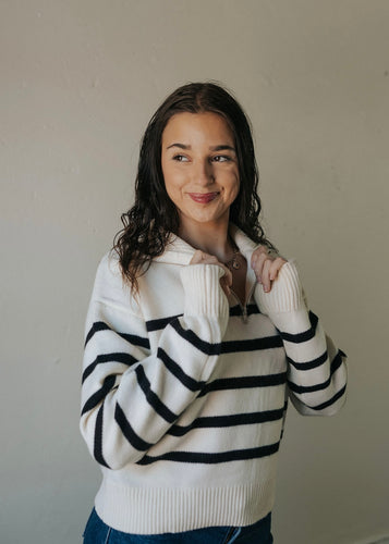 Adrienne Striped 1/4 Zip Sweater | Cream/Black