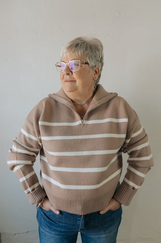 Adrienne Striped 1/4 Zip Sweater | Taupe/Cream