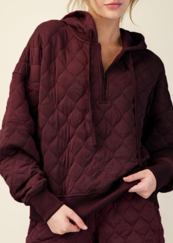 Nola Quilted Quarter Zip Hoodie | Dark Cherry