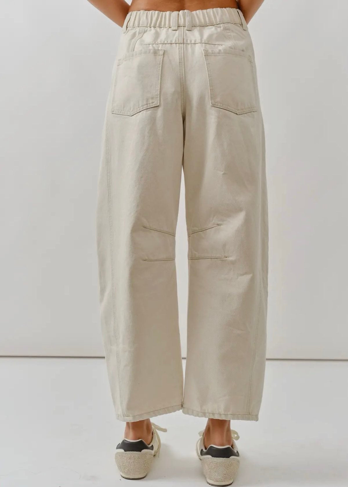 Step into timeless style with our Ivory Denim Barrel Jeans, the perfect match to our embroidered bomber jacket. Made from premium ivory denim, these high-rise jeans feature a barrel leg silhouette that adds modern shape and flatters every figure. The softly structured fabric moves with you, making them just as comfortable for everyday errands as they are polished for a night out.