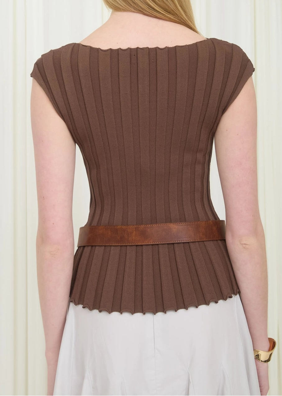 Minimal with a modern twist, this boat neck short sleeve ribbed sweater is the perfect blend of relaxed polish and subtle edge. Designed with a flattering wide neckline, it beautifully frames the collarbone while offering an easy, laid-back silhouette.