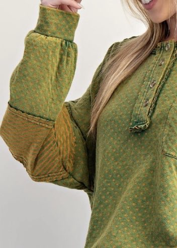 Playful meets laid-back in the Juniper Polka Dot Days Pullover, designed with a relaxed oversized silhouette that’s as comfortable as it is unique. A bold mix of prints brings personality to this casual favorite—polka dots throughout the body are accented by patchwork sleeve panels with diagonal stripes for a modern twist. Details like a chest patch pocket, small side slits, and a rounded hem add an effortless finish that makes this piece easy to style.