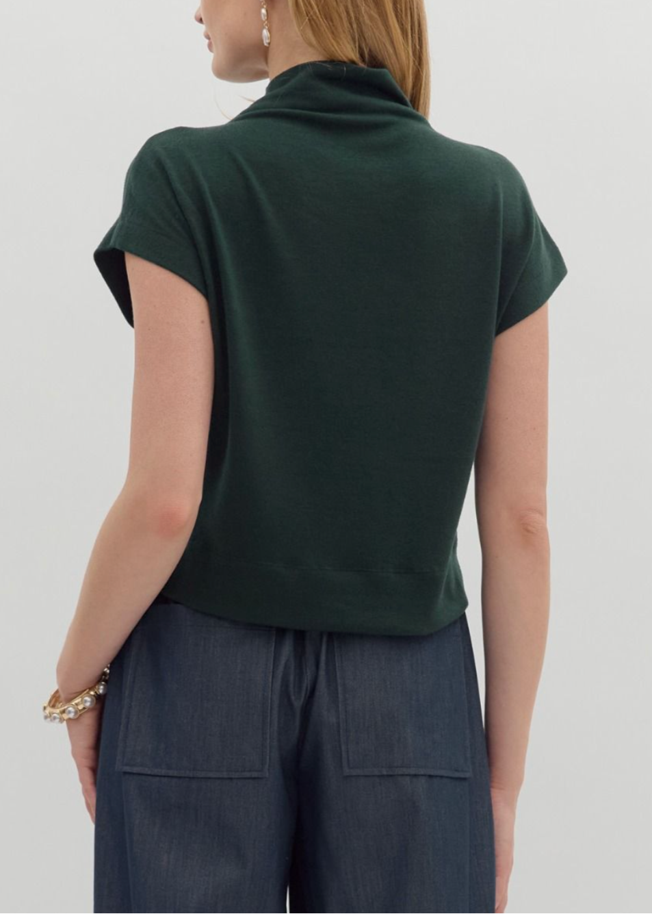 Effortless and refined, this mock neck pullover top is the perfect balance of comfort and sophistication. Crafted in a lightweight knit, it drapes beautifully with a relaxed silhouette and features a sleek mock neckline for a modern touch. Designed unlined for easy layering, this versatile piece transitions seamlessly from work to weekend.
