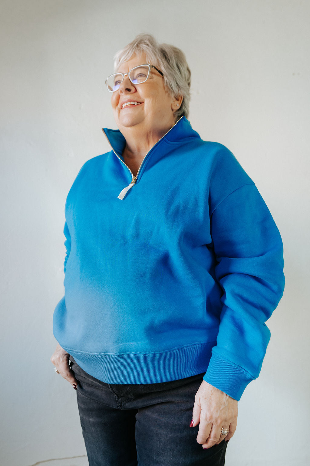 The quarter-zip neckline allows for easy layering and adjustable warmth, while ribbed cuffs and hem give it a clean, polished finish. It’s the sweatshirt you’ll reach for again and again—soft, simple, and effortlessly versatile.