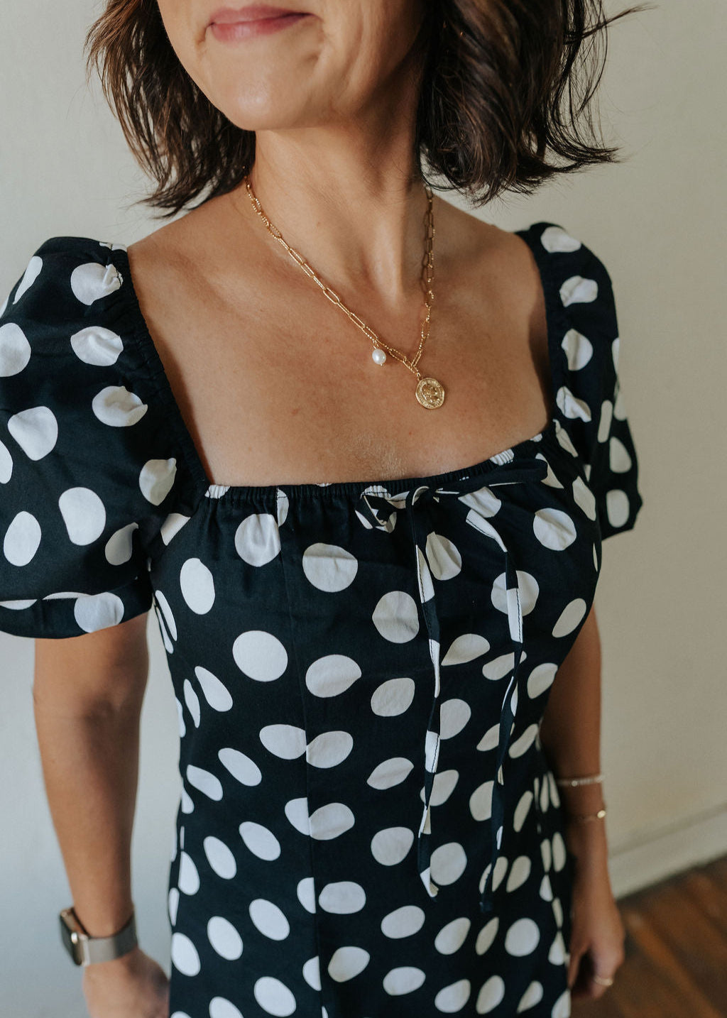 A wardrobe favorite that feels both modern and nostalgic, this polka dot dress will never go out of style.