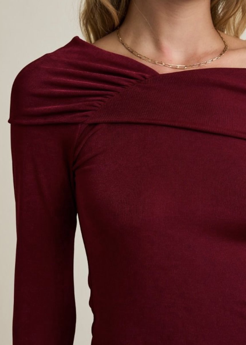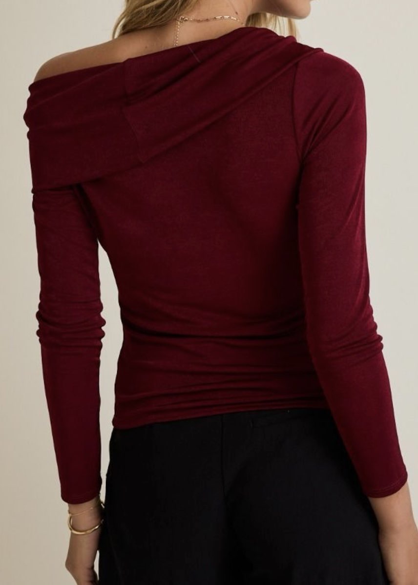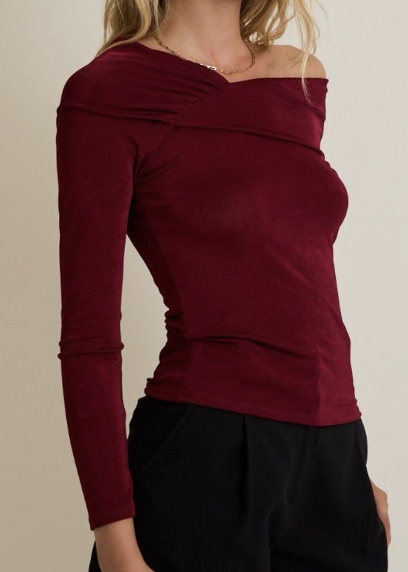 Sophisticated and effortlessly flattering, the Off-Shoulder Long Sleeve Top is designed to elevate your everyday wardrobe. Featuring an asymmetrical neckline with softly draped detailing, this top strikes the perfect balance between polished and modern.