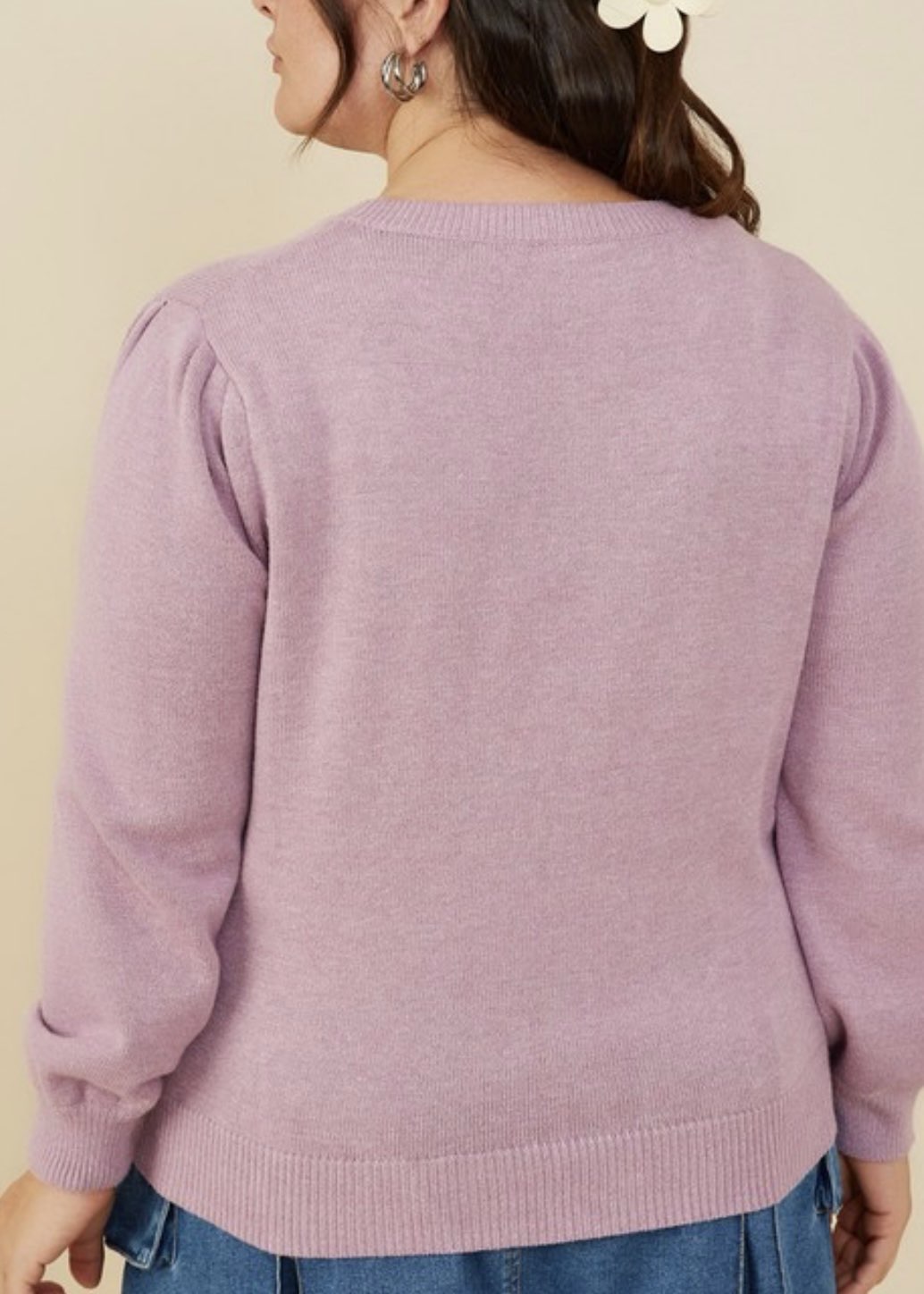 Soft and feminine, the Lavender Pearl Hearts Pullover Sweater extended adds a romantic note to your wardrobe. Designed in a gentle lavender hue, it features delicate pearl heart details, a round neckline, and cuffed sleeves for a timeless, flattering fit.