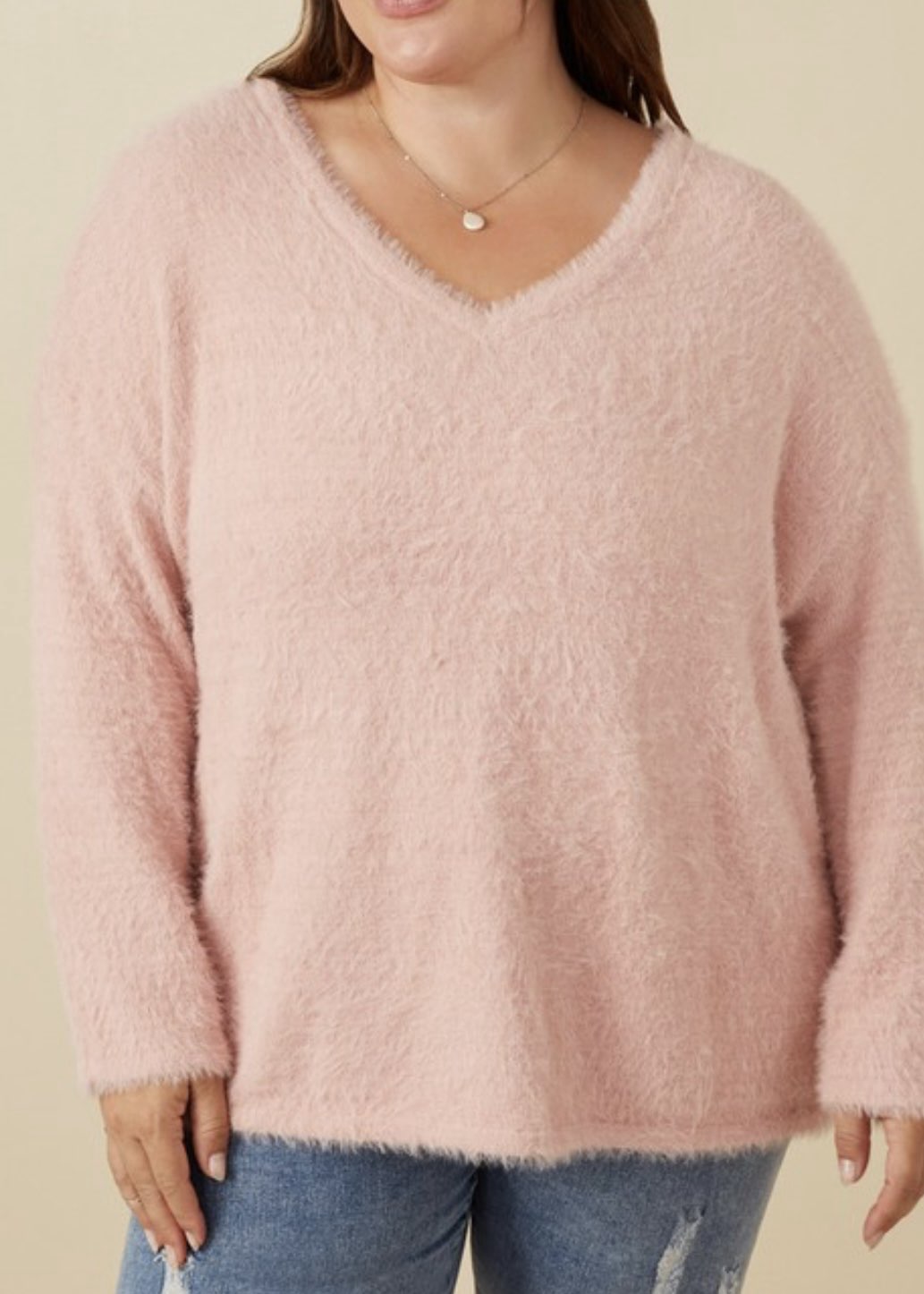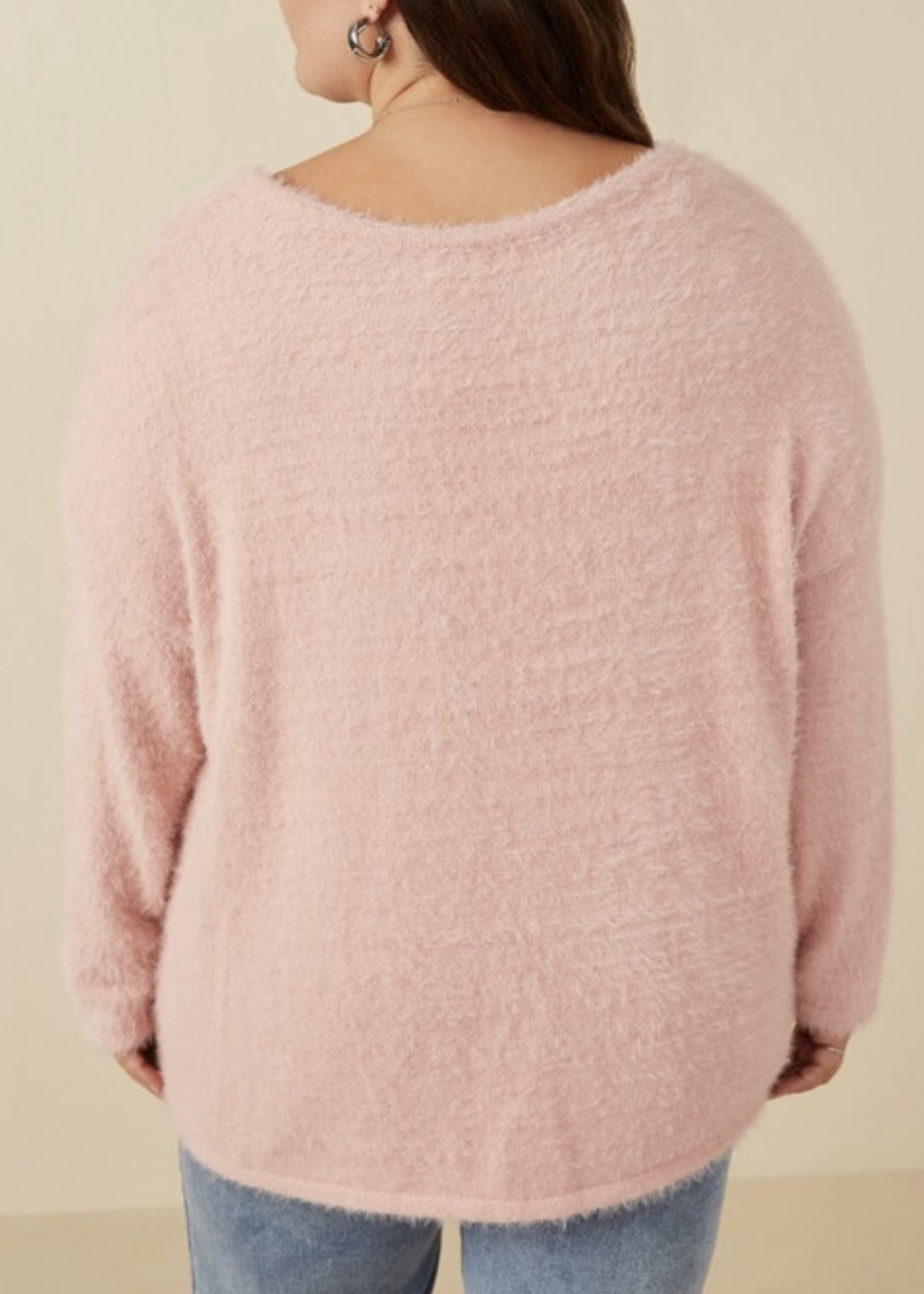 Soft, airy, and effortlessly elegant, the Blush Mohair V-Neck Sweater Top extended brings a touch of luxury to your everyday style. Crafted from plush mohair knit fabric, it features a relaxed silhouette with a flattering V-cut neckline and long sleeves for cozy comfort.
