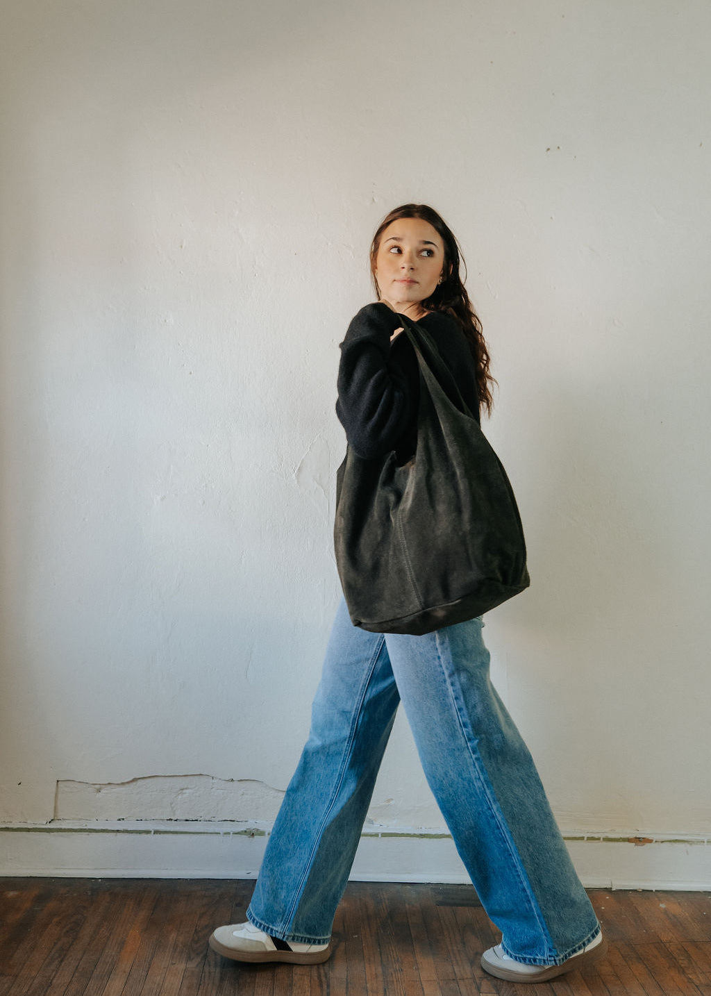 Exterior: Genuine suede leather, soft to the touch and resistant Interior: Large main compartment with an inner pocket with zip closure, perfect for small items Additional details: Includes a removable case with zip closure, held by a chain Handles: Wide handle integrated into the design, for comfortable carrying on the shoulder Size: Large and spacious, ideal for daily use.