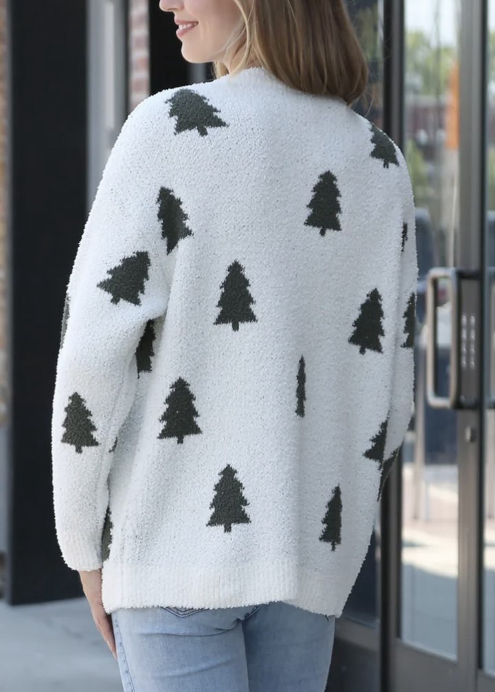 Cozy meets cheerful in our Tree Pattern Luxury Soft Sweater. Crafted from 100% polyester microfiber, this crew neck pullover is as soft as it is stylish, with a plush texture that feels like a warm hug. The playful green and white tree pattern adds a festive, fresh touch, while the long sleeves and slightly cropped silhouette make it an easy match with high-waisted denim or relaxed joggers. Designed in a one-size fit for effortless layering, this sweater is perfect for lounging at home, casual outings, or gifting to someone who loves cozy comfort with a dash of whimsy. Machine wash cold on a gentle cycle, lay flat or tumble dry low, and enjoy its softness season after season.