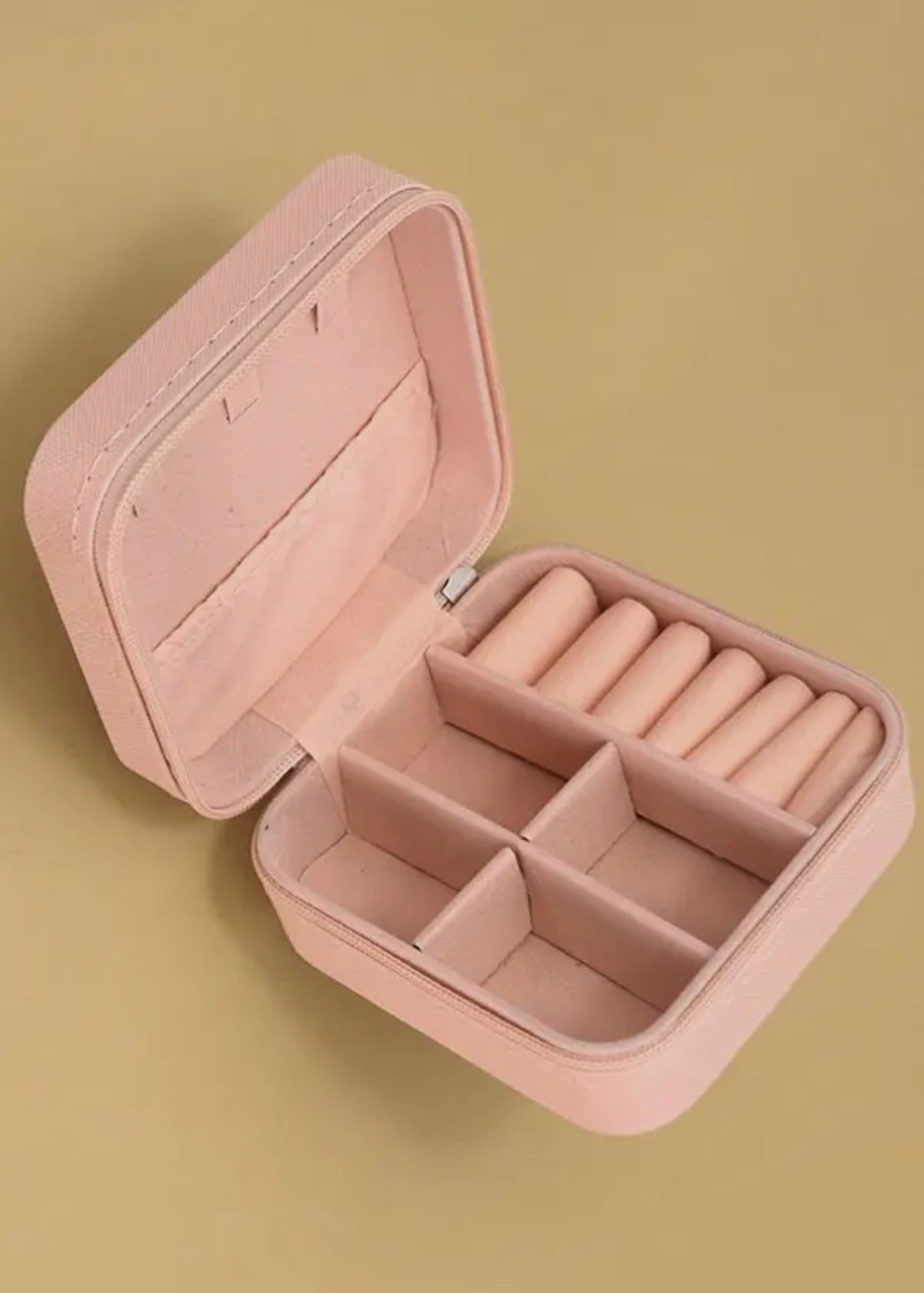 Multiple Compartments: Featuring various compartments, including ring rolls, earring holders, and adjustable dividers, this case provides ample space to neatly store rings, earrings, necklaces, bracelets, and other small accessories.