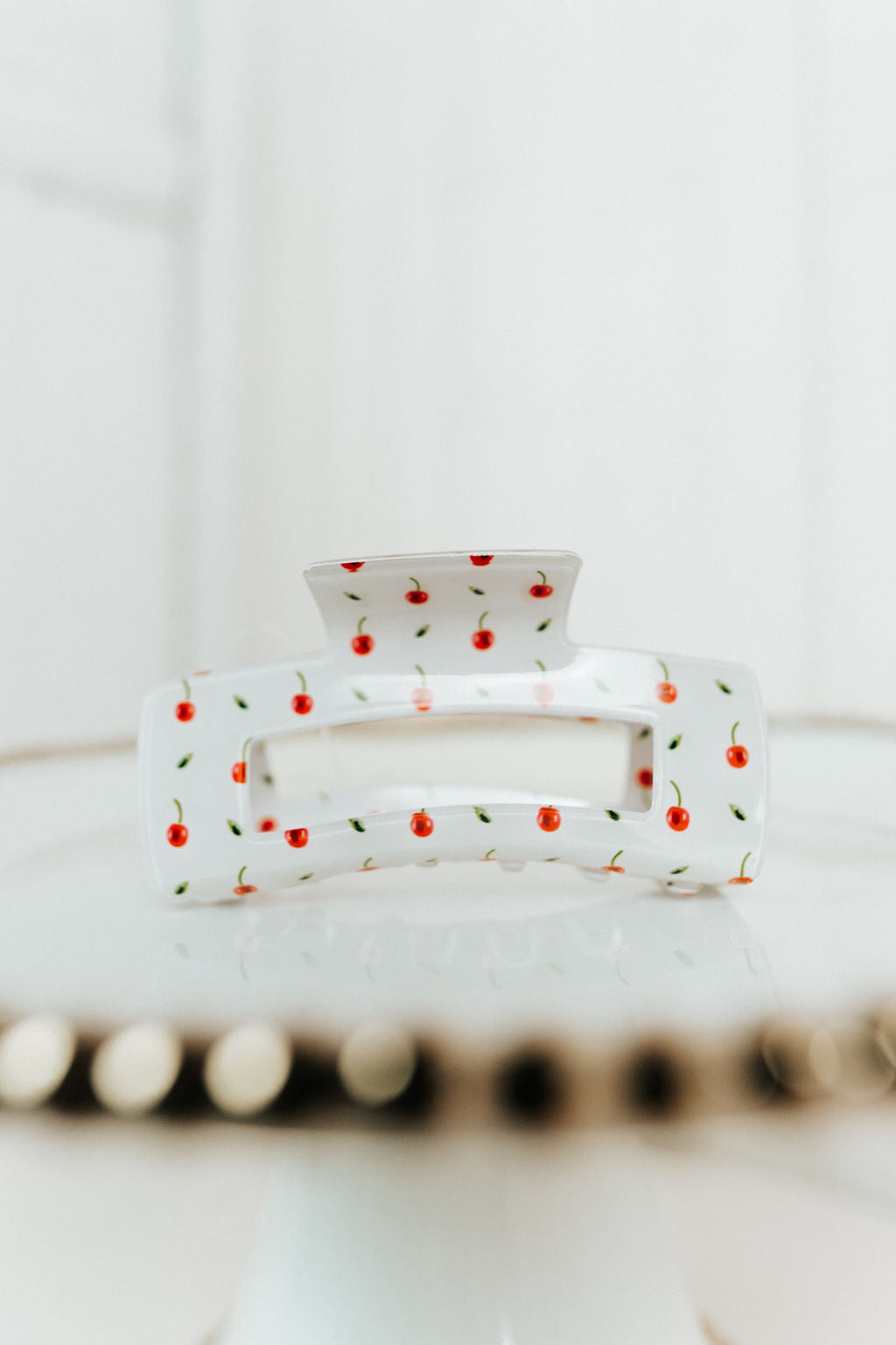 Our Large Cherry Claw Clip is stylish and functional to hold your hair securely while adding a playful touch to your look. Made from durable PVC material, these clips feature a vibrant cherry design that stands out.