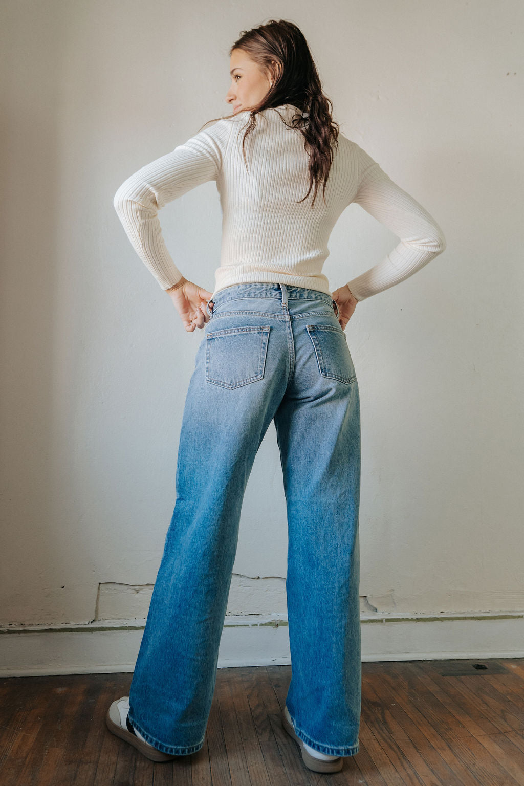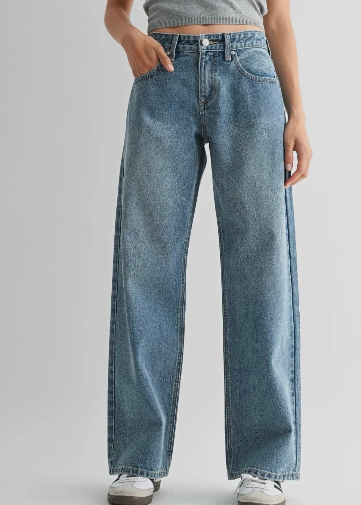 A fresh twist on a favorite silhouette, these Medium Wash Mid Rise Baggy Jeans bring effortless style with everyday comfort. Designed with a flattering 9.5” rise, 30” inseam, and 12” leg opening, they offer a relaxed barrel-leg fit with just the right amount of structure. The versatile medium wash makes them a true closet staple—easy to dress up with heels or keep casual with sneakers. Crafted with premium denim, they’re a timeless addition to any denim rotation.