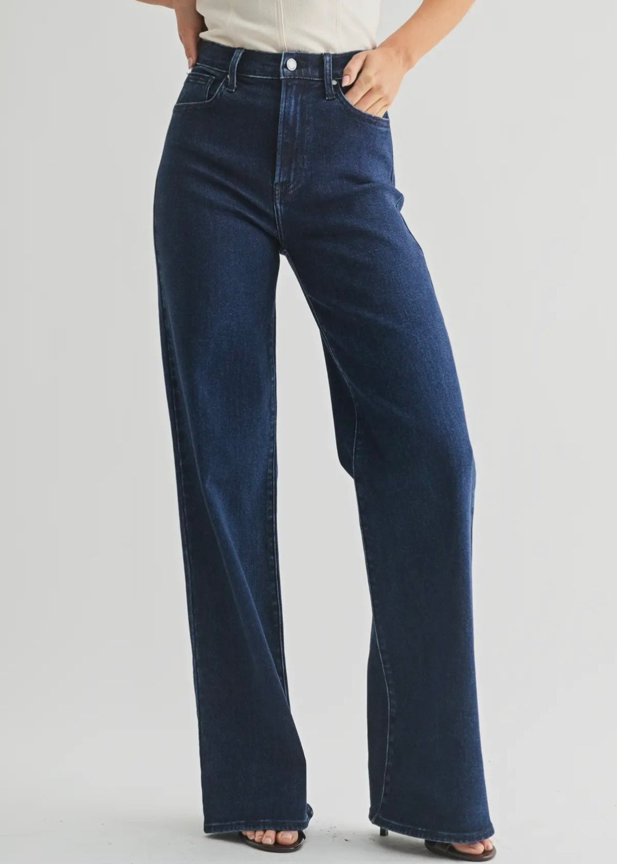 Elevate your denim game with the Dark Wash Palazzo Jean, designed with a flattering high rise and an effortlessly chic wide-leg silhouette. The dark denim wash gives this style a polished, versatile edge—perfect for dressing up with heels or keeping casual with sneakers. With an 11" rise, 32" inseam, and 11" opening, these jeans are made to elongate the legs while providing comfort and structure.