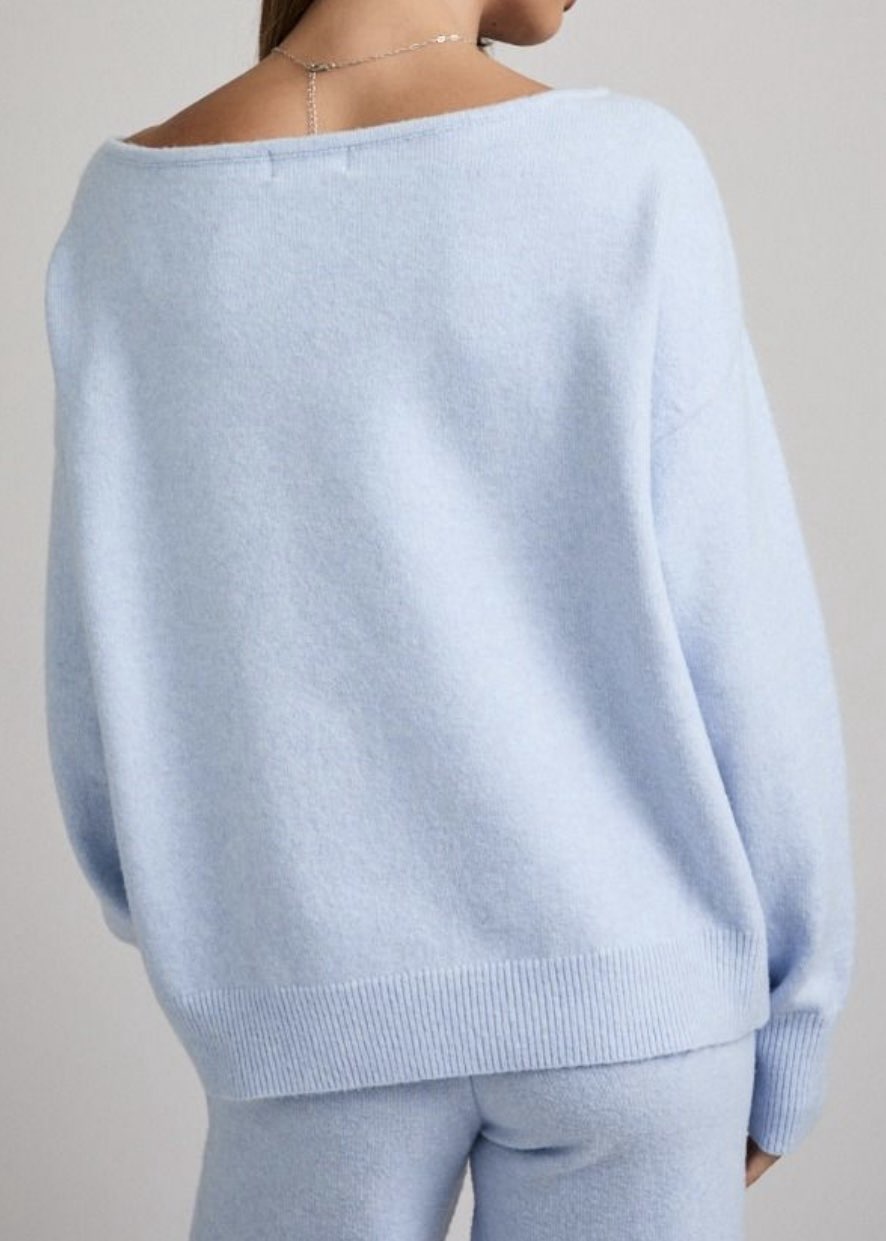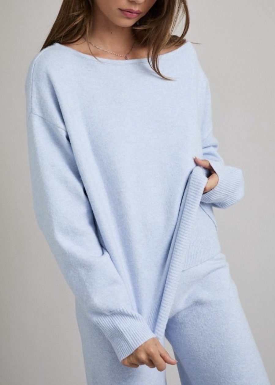 Soft, airy, and effortlessly relaxed, the Cloud Blue Off Shoulder Sweater brings a touch of dreamy comfort to your everyday style. Designed in a light blue hue, it features a slouchy off shoulder neckline, long sleeves with ribbed cuffs, and a gently relaxed silhouette that drapes beautifully.