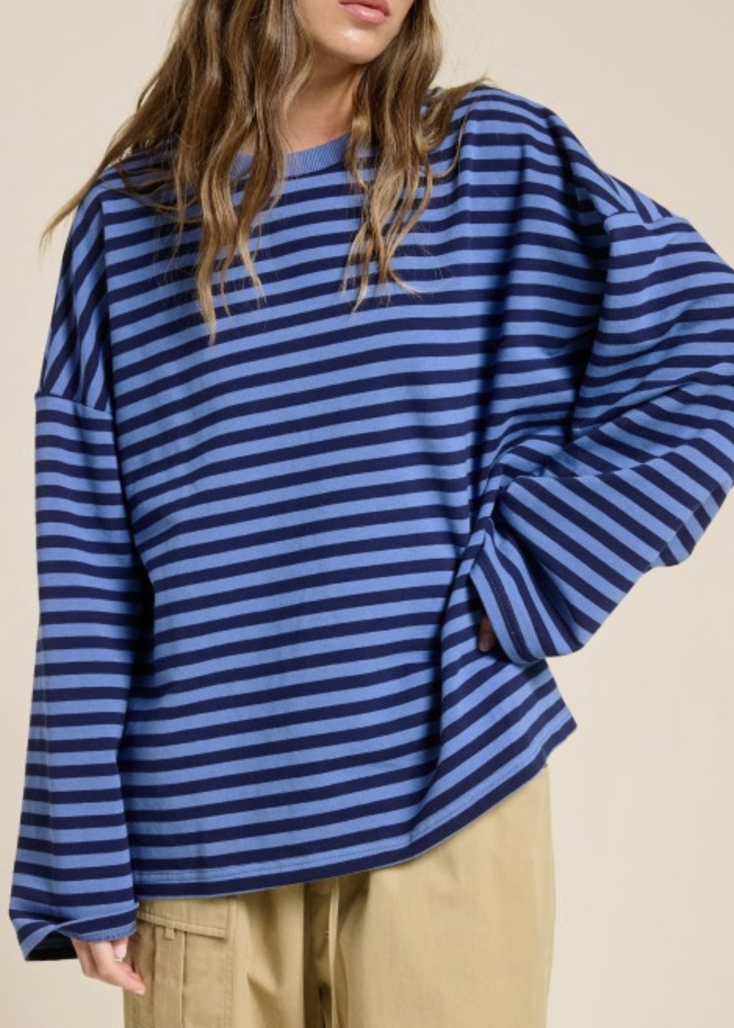 • Load image into Gallery viewer, Blue Striped Terry Oversized Long Sleeve Top