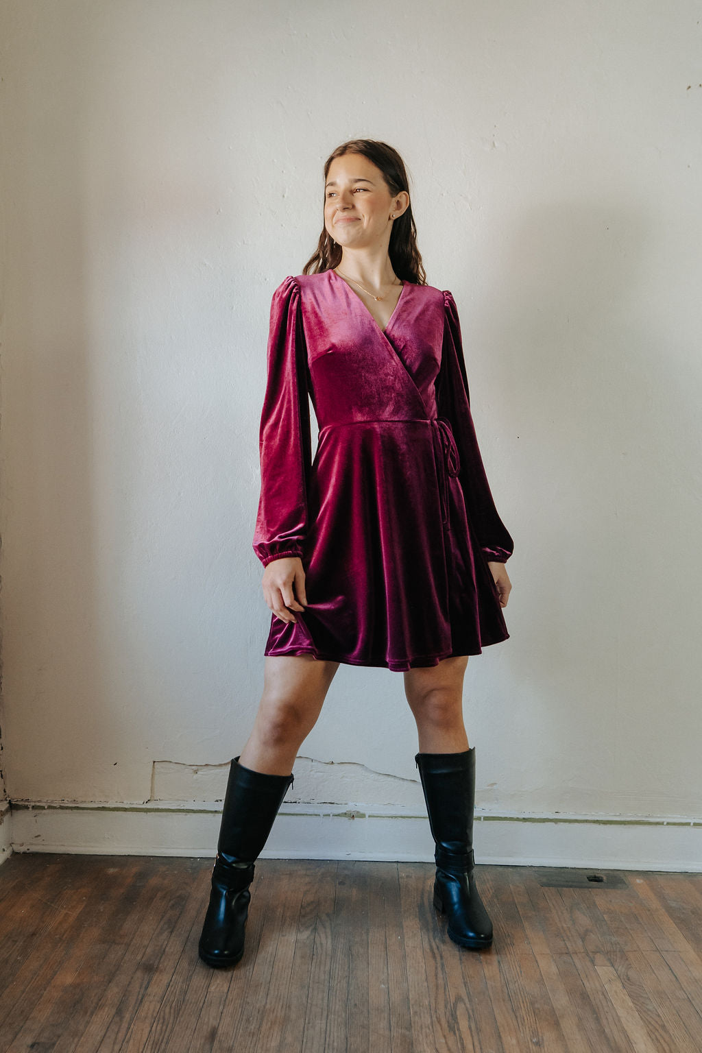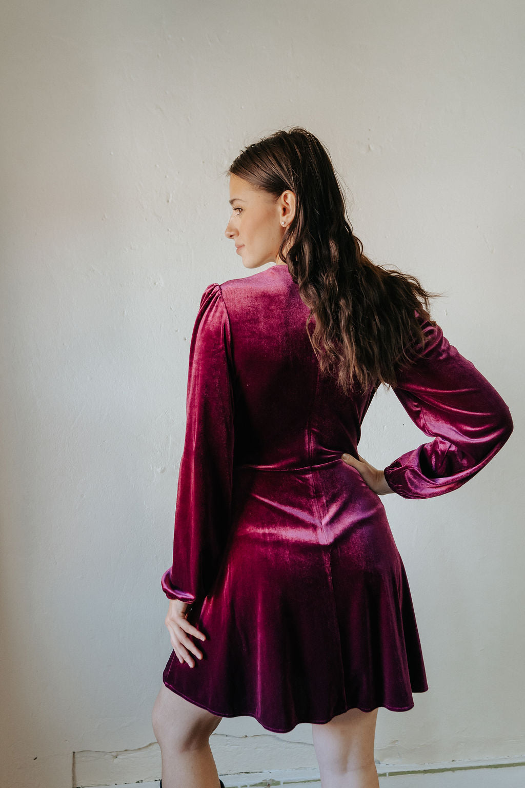 Romantic and refined, The Vivienne is the velvet dress you’ll reach for whenever you want to feel instantly put-together. Crafted in a soft stretch velvet, it features long sleeves with gathered shoulders for subtle drama and a wrap cut that flatters every curve.