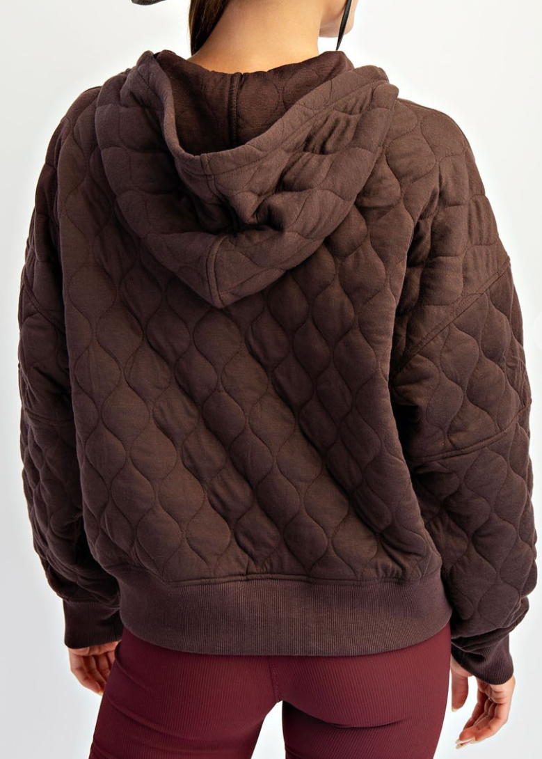 Nola Quilted Quarter Zip Hoodie | Espresso