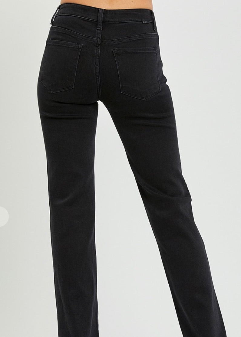 Our Extended Risen Black Mid Rise Straight Leg Jeans are a great pair of black jeans that can be dressed up or down. This mid rise jeans features a slim, straight leg, button zipper closure, five functional pockets and ample stretch for all day comfort. Style with boots, heels, flats, sneaker or sandals--your options are truly endless!