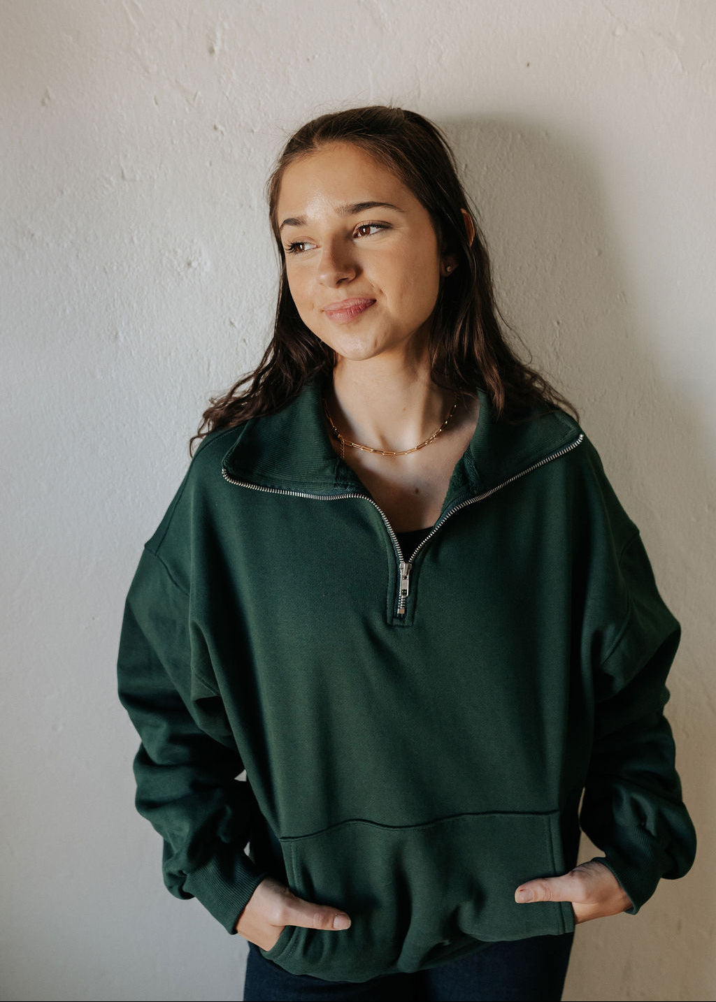 Stay cozy and stylish with our Half Zip Soft Terry Fleece Sweatshirt. Made from soft terry fleece for all-day comfort, this sweatshirt features a convenient half zip design and a roomy kangaroo pocket. Zip it up on chilly days to keep your neck warm, or wear it open for a laid-back, collared look that's effortlessly stylish.