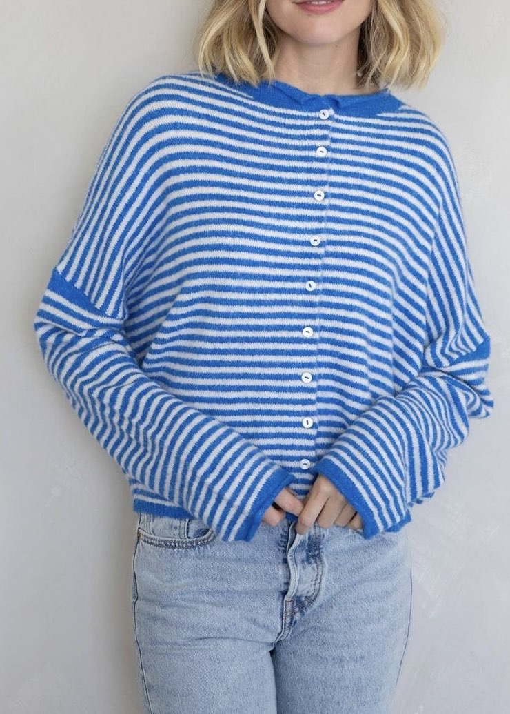 A core piece for the entire year, you'll be grabbing for the Millie Jane every season. Soft and cozy lightweight cardigan with rolled edge finish on the sleeves and collar. Available in new colors each season. Millie Jane runs generous. Size down for best fit.