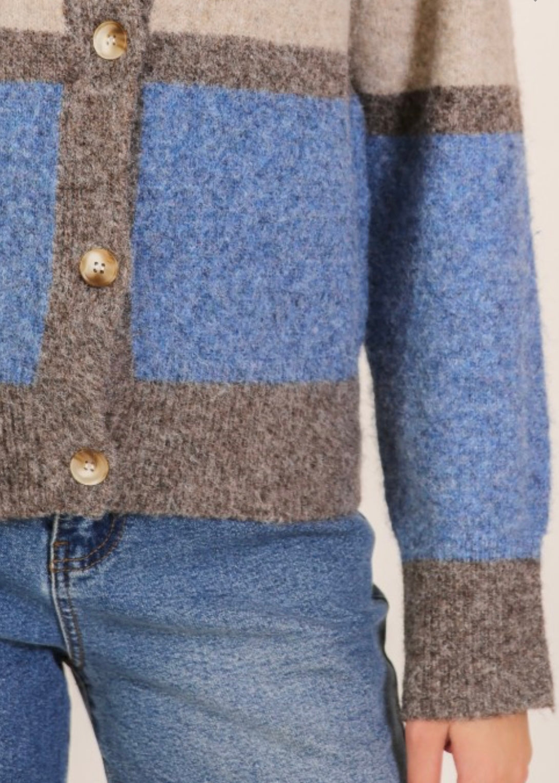 Available in two stunning colorways, it offers something for every style mood—a sophisticated mix of deep red, light pink, and beige, or a serene combination of light blue, beige, and slate blue. Whether you’re styling it for workdays or weekends, this women’s striped cardigan adds cozy comfort with a modern edge.
