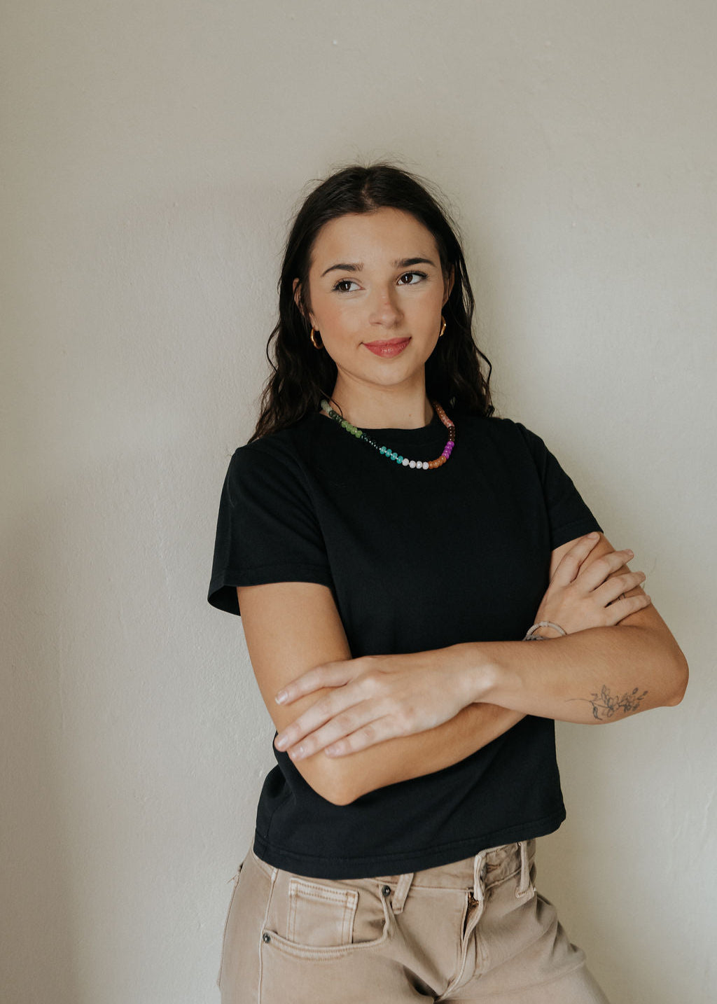 Our Tomi Tee is a number one seller! Tomi is a short sleeved, mineral washed cotton tee, cropped right at the waistline for an effortless fit. An everyday essential you will reach for every season. Perfect on its own or as a layering piece. True to size.