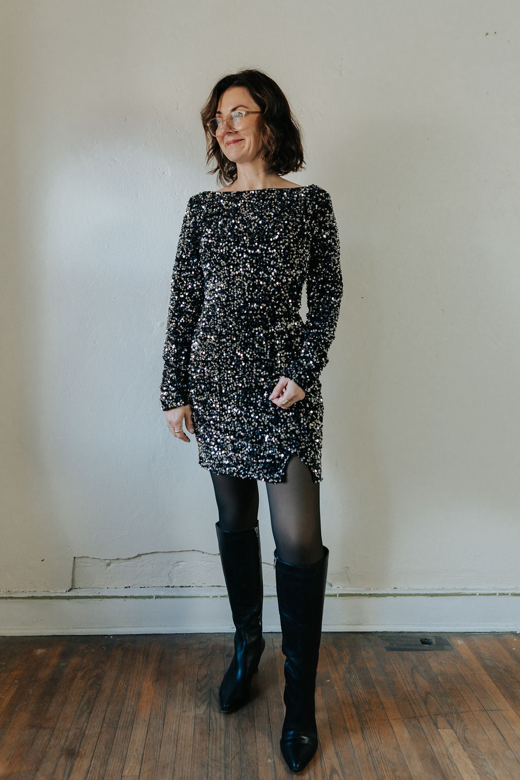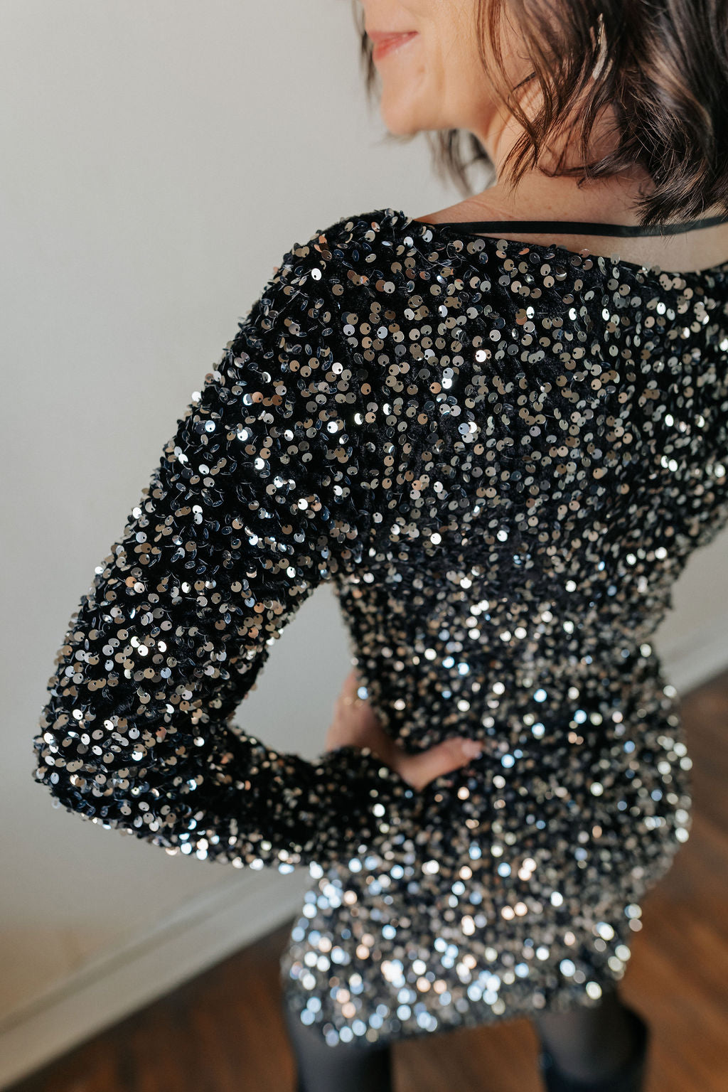 Make every entrance unforgettable in the Bella Sequin Mini Dress — a dazzling statement piece designed for nights that call for sparkle. This stunning black sequin dress features long sleeves, a sleek silhouette, and a mini length that perfectly balances sophistication and allure. The shimmering sequins reflect light beautifully from every angle, ensuring all eyes are on you.